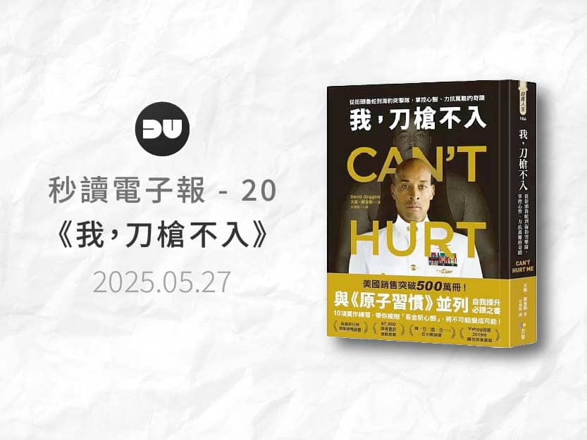 追求舒適與快樂是動物的天性。 我們從來不會看到野外有哪些動物會為了變強,刻苦訓練自己。 那怕真的有為了生存需要變強的需求,也只能透過代代演化的機制,讓整體族群一起「變強」。 但人類不同。 雖然我們也受制於這種趨利避害的天性,但我們卻有著極度複雜的大腦。 因此我們不必透過演化這種漫長的機制,可以透過投注時間、心力,訓練自己在某方面變得更厲害。 這段時間內,我們必然要忍受痛苦,也因此許多人會將這種訓練的歷程比喻作刀具鍛造工序,稱之為「淬鍊」。 《我,刀槍不入》這本書,可以說是淬鍊主義的極致。 雖然性質非常接近心理勵志的那種雞湯書,但這本書的閱讀體驗仍然非常新鮮。 閱讀這本書的每一頁都有如打雞血般,會讓你對挑戰躍躍欲試、恨不得馬上報名一場馬拉松甚麼的。 作者簡介 大衛.哥金斯 (David Goggins) 是一位享譽全球的心理韌性專家、前美國海軍海豹突擊隊員,以及超級耐力運動員。 他是美國武裝部隊中唯一完成海軍海豹訓練、陸軍遊騎兵學校和空軍戰術管制組訓練的成員。...