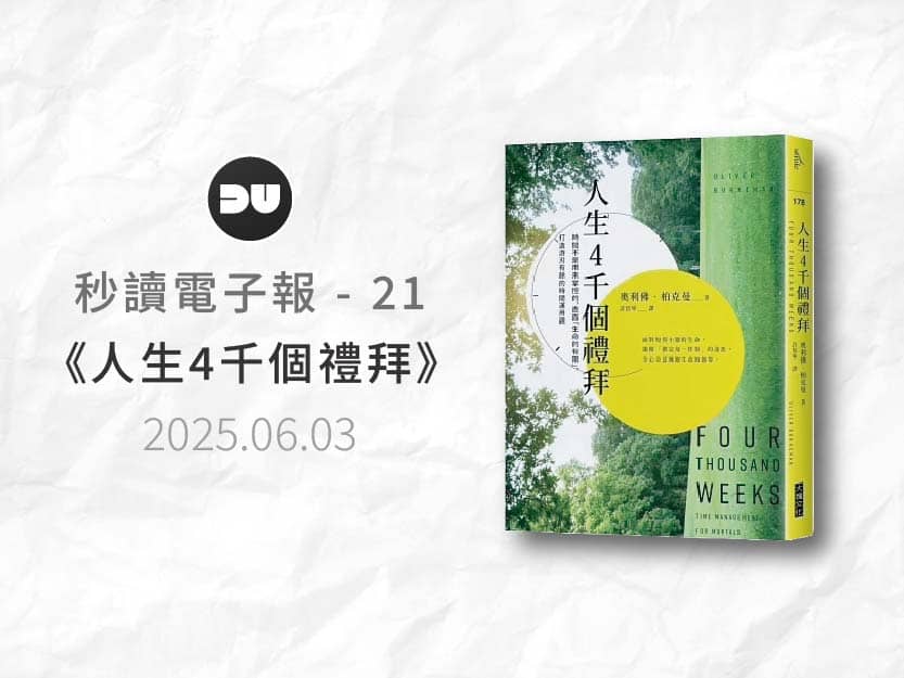 我們常以為,解決時間焦慮的辦法是變得更有效率。 在更短的時間,完成更多的事,也許就能更早達成那個「有朝一日」的目標。 但如果問題的根源不在效率呢? 奧利佛・柏克曼在《人生四千個禮拜》提出了一個令人不安卻無比誠實的事實: 假設你活到八十歲,一生大約只有四千個禮拜。 這本書不是時間管理術的大全,也不是叫你要更會安排行程的書。 它反而要我們承認一個難以面對的現實——我們做不到所有想做的事。 我們根本不可能「安排好」人生。 我們唯一能做的,是誠實地承認生命的有限,然後好好選擇怎麼活。 作者簡介 奧利佛・柏克曼(Oliver Burkeman),英國專欄作家。 長期在《衛報》(The Guardian)撰寫「這週的自我改善」專欄,專注探討時間、心理健康與現代生活的荒謬。 不同於一般生產力作家追求效率至上,柏克曼的作品以哲學視角切入,反思焦慮、無常與存在的本質。 核心觀點一:接受人生有限,你做不到你想做到的事 還記得大學某一堂通識課,教授分享過一個家喻戶曉的思想實驗: 一個杯子、一些大石塊、一盤細沙和一杯水,試問,該如何把這些東西都放入杯中? 我們都知道教授想要傳達什麼。...