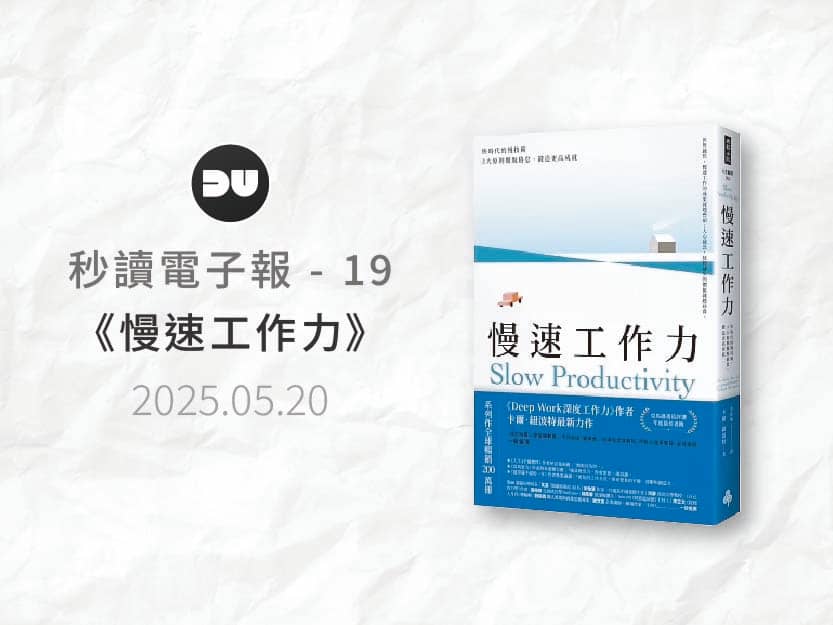 今天這篇電子報重新寫了兩遍。 主要就是覺得這本書給我的感受滿多的,一直在琢磨該怎麼完整呈現,所以來不及在早上發出,非常抱歉 XD 以下正文: 不知道你有沒有過這種感覺: 感覺身邊的人、社群媒體上的人,都在發光發熱。 回頭看看原地打轉的自己,一股莫名的 焦慮感 開始在看似平靜的水面下不斷翻騰。 想要「趕上別人」的心態,實質上已經讓我們落入了比較的陷阱。 我們想做得更多、更快,卻也不確定自己到底有沒有往正確的方向移動,自我懷疑逐漸累積。 此時焦慮感仍然在身後窮追不捨,在兩方的夾擊之下,內耗就發生了。 內耗久了,倦怠、覺得一切都沒什麼意義的無力感就會跟著出現。 這就是本書作者想要推翻的文化。 他認為,以更人性化、更能長久、更有意義的方式去工作,才是更符合人類天性的模式。 從古人的智慧、腦神經科學、人文研究中,作者為我們雕塑出了這一場「慢速」革命的雛型。 帶我們走上一條不需要靠「焦慮」驅動,也能抵達終點的路。 作者簡介 卡爾・紐波特(Cal Newport),美國知名作家暨電腦科學教授。 他的研究專注於數位科技對文化及個人生活的影響,尤其致力探討工作效率與專注力的關係。...