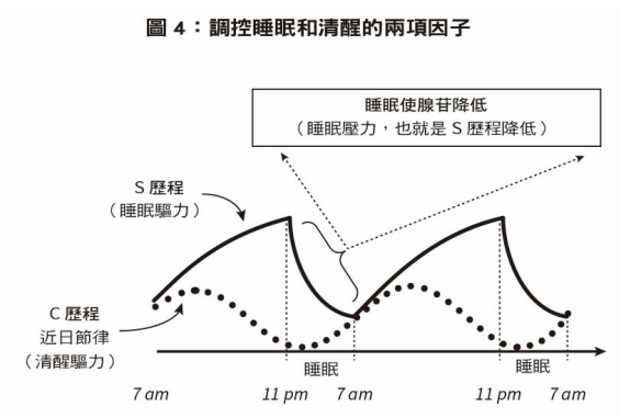 這幾年對於健康議題很著迷。 從小我都不覺得健康是什麼特別重要的資產,畢竟我本來就屬於幸運的那群人,沒有先天疾病、後天也沒有遇到重大的健康危機。雖然不至於主動去做一些嚴重破壞自己健康的事,但是好吃的加工食品、該熬夜追完的劇、可以整天癱在電腦前打的電動,我可是來者不拒。 但隨著我讀的實用類書籍越來越多,會發現幾乎每一本書最後都會指向同一個觀念: 健康是一切的基礎。而我們可能正在不知不覺地浪費它。 縱使你有著完滿的人生:知心的伴侶、善良的孩子、真誠的朋友、成功的事業、花不完的錢,如果加一條但書,你長年臥病在床,那麼擁有上述的條件,也沒有意義了。 從《執行長日記》、《代謝》、《別把你的錢留到死》、《納瓦爾寶典》到今天的《為甚麼要睡覺?》,全部都是把我推向健康這個大坑的推手們,感謝它們一拳一拳把我槌醒。 今天就要來講講健康的三大關鍵之首:睡眠。 《為甚麼要睡覺?》是我今年為止最喜歡的書,對我來說,閱讀這本書就像是得知發票中了一千萬一樣:激動、不知所措、開始想很多。導致我想用超認真的心態去對待睡眠,結果反而緊張到睡不好覺的那種程度。 作者簡介 馬修・沃克(Matthew Walker),國際知名的神經科學家與睡眠專家。 他經常受邀至各大媒體訪談,包括CBS《60分鐘》、BBC、國家地理頻道、TED等;擔任NBA、美式足球聯盟(NFL)、英超(Premier League)等頂尖運動聯盟的睡眠顧問,協助運動員提升表現;同時,他也擔任Google生命科學部門的睡眠科學顧問,為各大知名企業提供睡眠諮詢服務,提升企業的整體生產力。 本書一經發行即登上《紐約時報》與《星期日泰晤士報》暢銷書榜,並翻譯成40多種語言。這本書從神經科學與生理學的角度揭示睡眠的重要性,並提供改善睡眠品質的方法,被譽為「現代睡眠科學的里程碑」,也使他成為全球最具影響力的睡眠倡導者之一。 核心觀點 #1:睡眠是什麼? 如果假設我們從未理解過睡眠的概念,那麼一個睡著的人對我們來說可能就像死掉一樣。 而且,每天會固定死掉 8 個小時,聽起來滿可怕的。既然所有物種每天都需要經歷「偽死亡」週期,使自己暴露於被天敵攻擊的風險中,那麼睡眠這種機制怎麼沒有在演化中被淘汰? 這是因為睡眠是有其功用的,就像動物需要進食才能存活,動物同樣需要睡眠才能存活。 你的某個高中老師可能對上課打盹的你說過:「死了以後有的是時間給你睡。」這句話。現在這個概念應該被淘汰了,請直接用科學期刊打臉他,跟他說「不睡覺你會死掉」。 我們會直覺地認為,睡眠就是一個「人體關機」的過程,但事實上關機的只有你身體大部分的肌肉而已,你的心臟、肺、大腦等重要器官並不會關機,你事實上也仍然聞得到、聽得到、看得到,只不過是大腦的機制暫時切斷了連結,讓你不會因為輕微的聲響就打斷睡眠。 其中最活躍的莫過於我們的大腦。 我想應該大多數人都知道「非快速動眼」跟「快速動眼」的概念。這是兩種用腦波 (還有眼球活動) 來區分的睡眠模式。 而我們的睡眠,正是由這兩種睡眠模式組成的循環周期,如下圖。 非快速動眼睡眠:一共分成四期,其中三到四期稱為深度慢波睡眠,如同字面上的意義,這個時期的腦波非常緩慢,主要的功用就是幫助你清理大腦,把不必要的神經連結切斷、重組大腦資訊,並把你短期記憶搬移到可以長期儲存的部位。 快速動眼睡眠:同樣如同字面上的意義,這個時期你的眼球會快速左右移動,而我們大多數的夢境則是在此時產生,因此也被稱作夢境睡眠。這個時期的主要功能是強化神經連結、整合記憶並處理情緒,所以又與創造力和情緒調節相關。 你可以這樣想像:你現在眼前有一大塊泥土,你的目標是在睡眠期間把一座大衛像雕刻出來,那麼你首先要做的就是先挖刻出大衛的大致形體,這就是非快速動眼睡眠的工作,把不必要的部分去除。接著,你要開始雕刻大衛的肌肉線條、髮絲細節,這就是快速動眼睡眠的工作,強化連結。 也就是說,這兩種睡眠缺一不可。一場「好覺」,需要的是完整的非快速動眼睡眠 + 快速動眼睡眠。如果你為了早起,犧牲了睡眠的後段,也代表你將會損失大部分的快速動眼睡眠,可能嚴重影響你的學習、創意表現。 講完了有點複雜的結構部份,現在我們來簡單說一下睡眠是怎麼發生的? 控制睡眠的兩種驅力:睡眠驅力、清醒驅力。 睡眠驅力:大腦會在你清醒的時候持續產生腺苷,它的主要作用就是跟大腦受體結合,並抑制神經元的活動,讓你感覺昏昏欲睡。隨著它持續累積,你會變得越來越想睡,這就是所謂的「睡眠驅力」。當你無法克制地大睡一覺之後,你的大腦就會在睡眠期間自動清除腺苷,讓你重新感到神清氣爽。 清醒驅力:我們大腦的視交叉上核 ( 很難記的名字 ),負責掌管所謂的「生理時鐘」。當外界的陽光減少,它就會命令褪黑激素去告知身體:「天黑了!該睡覺了!」,於是人體的體溫就會漸漸降低,幫助我們進入睡眠。而當清晨,太陽開始透過眼皮進入大腦時,視交叉上核又會收到訊號,消除褪黑激素,讓我們自動醒來,也就是「清醒驅力」。 事實上這兩套系統是獨立運作的,你大可不理會褪黑激素的影響,繼續喝咖啡挑燈夜戰,但是之所以「規律作息」是良好睡眠品質的首要條件,正是因為這樣可以讓這兩組系統同時作用,確保你可以在該睡覺的時候好好睡覺、該
